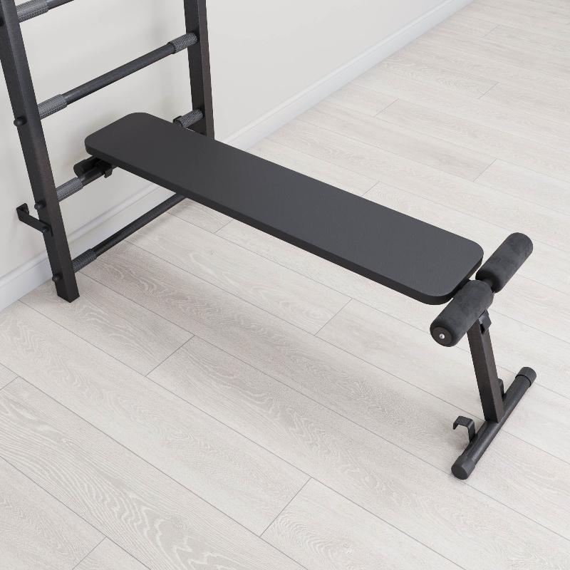 Скамья для пресса - это удобное дополнение к домашнему усиленному спортивному комплексу. Приставив скамью к гимнастической лестнице, получится функциональный тренажер для прокачивания мышц пресса и спины.