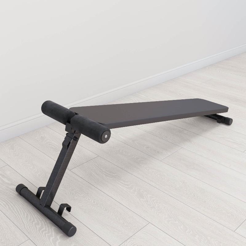 Скамья для пресса имеет складную конструкцию и является компактным, удобным для хранения оборудованием. Благодаря усиленному каркасу, изготовленному из стальных профильных труб, тренажер выдерживает существенную нагрузку. На скамье могут заниматься как начинающие пользователи, так и опытные атлеты. Рекомендуемый вес пользователя составляет до 200 кг.