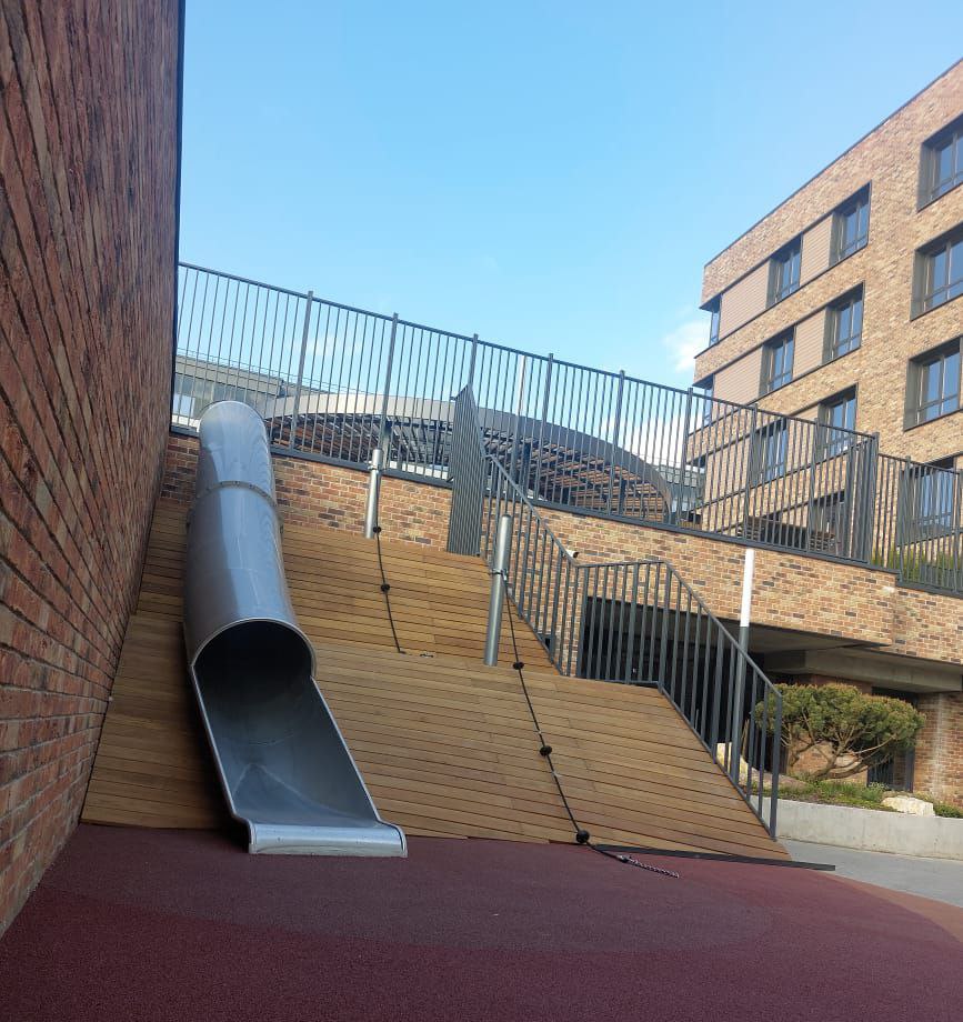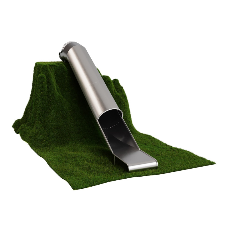 Горка изготовлена из труб диаметром не менее 30 мм с толщиной стенки не менее 2 мм и листового металла толщиной не менее 2 мм. Материал - сталь нержавеющая. Электрохимическая пассивация сварных швов.