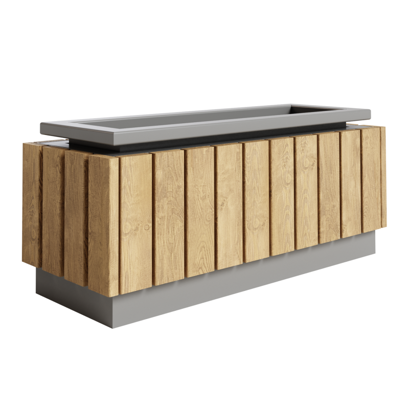 Каркас - сталь конструкционная, покрытие - цинкосодержащий грунт, окраска полимерным порошком (RAL по согласованию). Обшивка - дерево, покрытие - антисептик, масло террасное атмосферостойкое для древесины.
