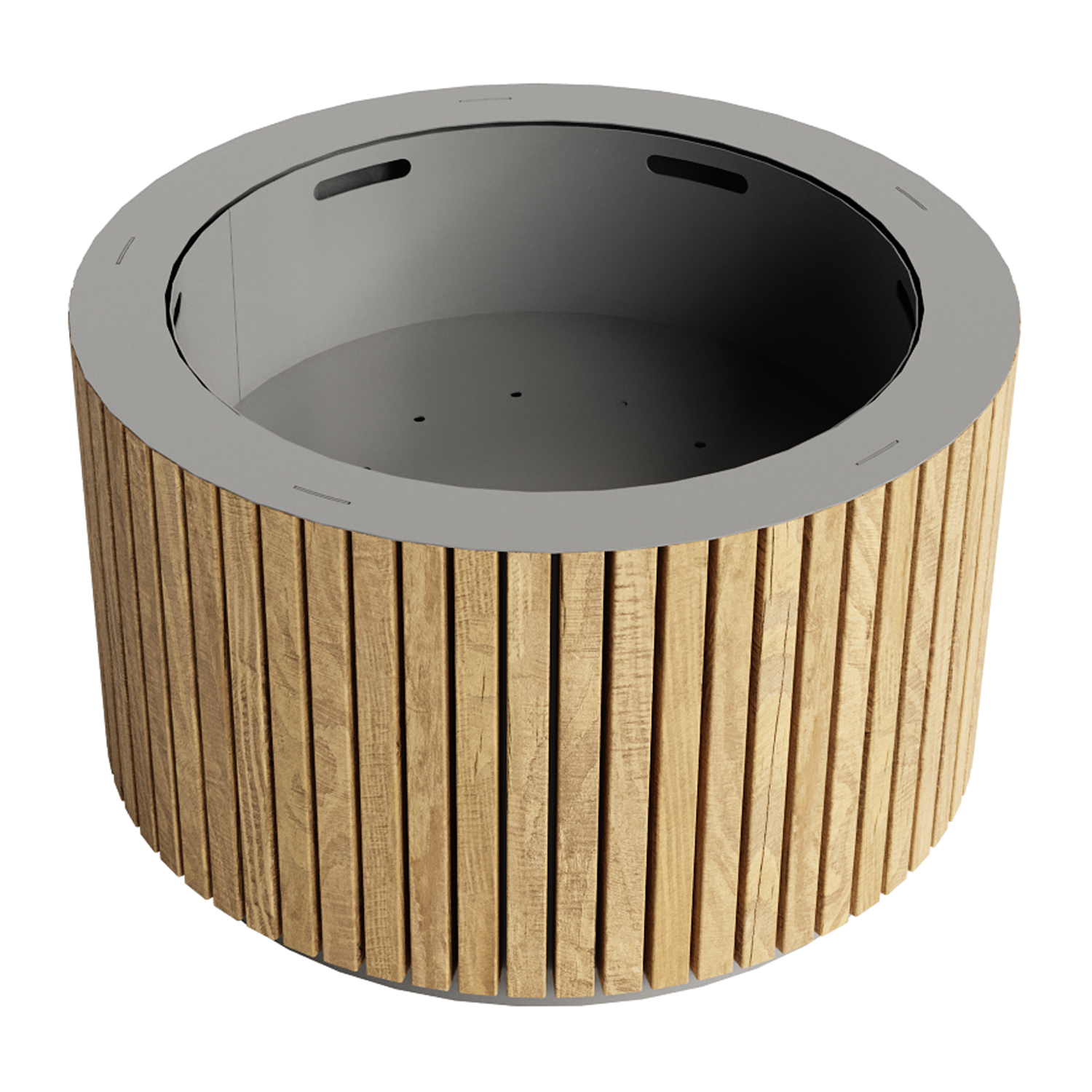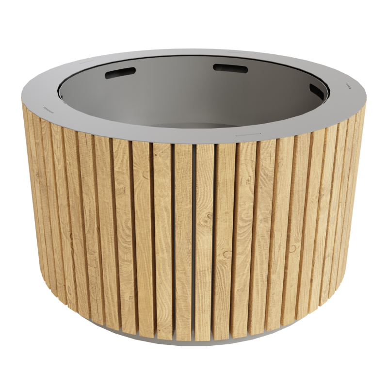 Каркас - сталь конструкционная, покрытие - цинкосодержащий грунт ,окраска полимерным порошком (RAL по согласованию). Обшивка – дерево (массив), покрытие - антисептик, масло террасное атмосферостойкое для древесины.