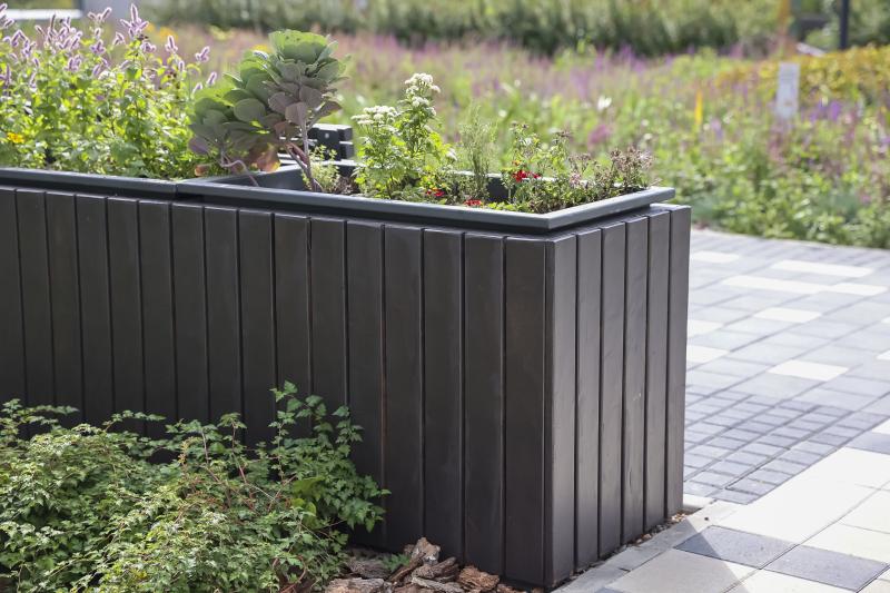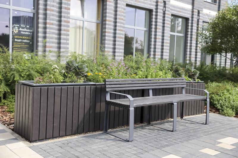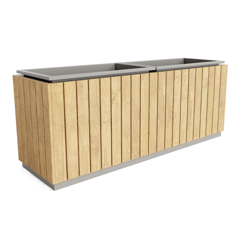 Каркас - сталь конструкционная, покрытие - цинкосодержащий грунт, окраска полимерным порошком (RAL по согласованию). Обшивка – дерево (массив), покрытие - антисептик, масло террасное атмосферостойкое для древесины.