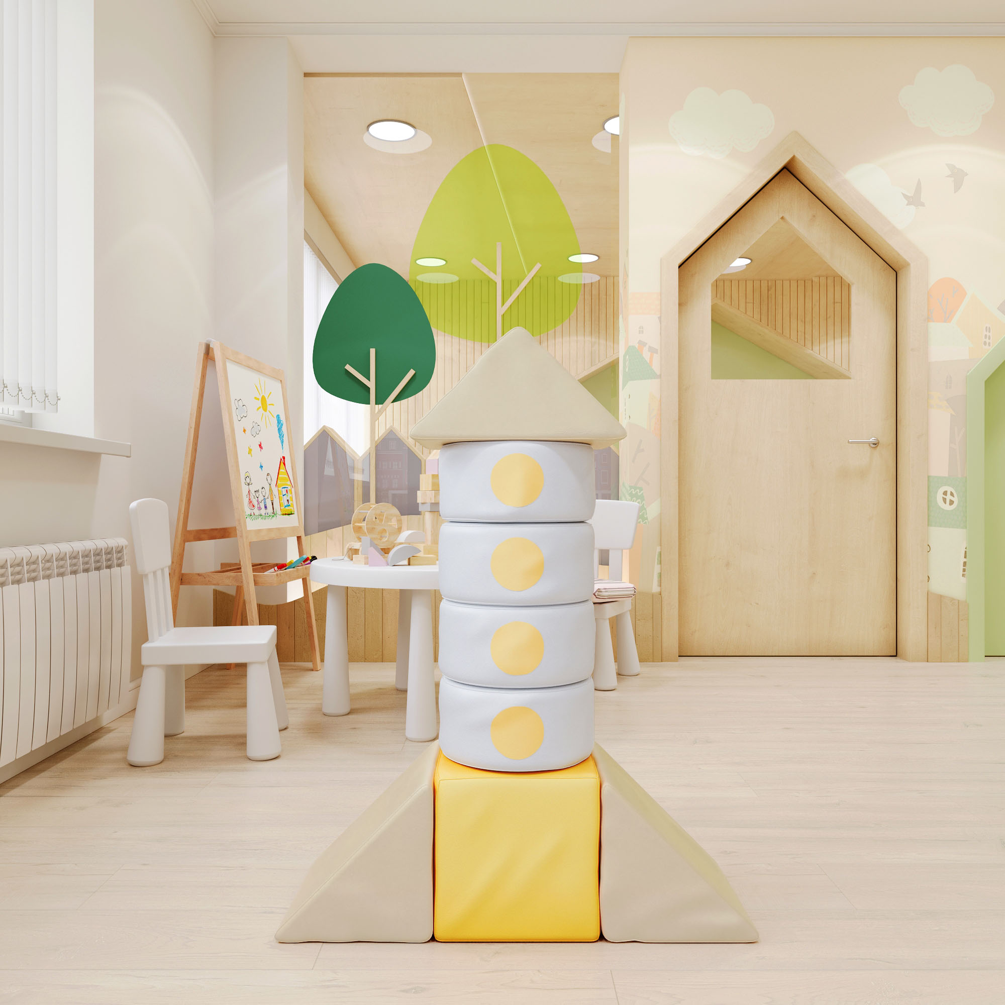 Мягкий комплекс Ракета ДМФ-МК-08.71.00 состоит из 8 элементов: треугольник, цилиндр, куб. Все элементы выполнены из поролона плотнотью 18кг/м3, обтянутые винилискожей. Все элементы могут использоваться по отдельности. Материал устойчив к деформации, разрыву, царапинам, истиранию, воздействию влаги и моющих средств, высоким температурам, световому старению, а также имеет высокую прочность на изгиб и стойкость окраски. Яркие цвета развлекают и надолго привлекают внимание ребенка, а необычная форма позволяет самостоятельно изучать окружающую среду в игровой форме, развивая моторику и вестибулярный аппарат, ловкость и выносливость.