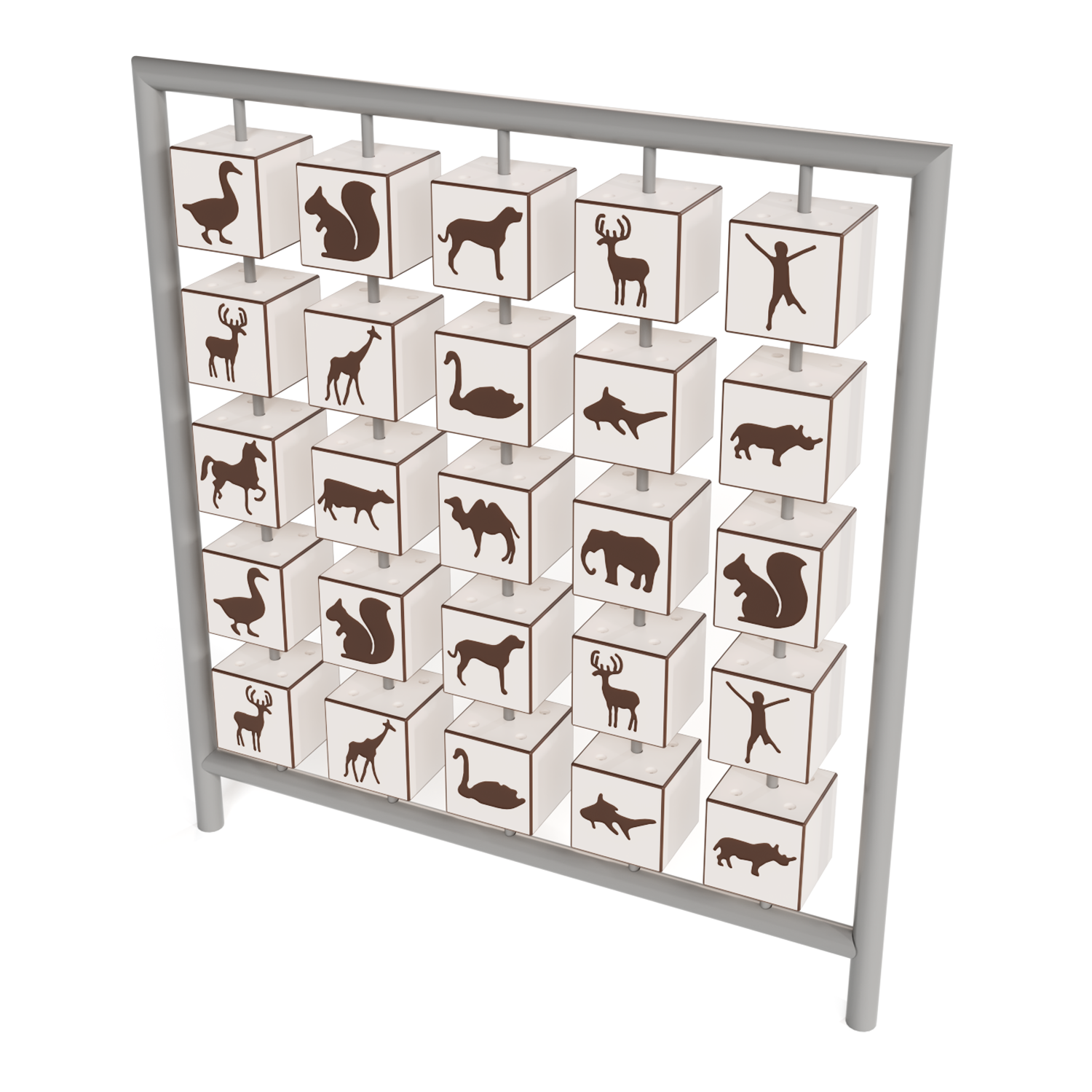 Каркас - сталь конструкционная, покрытие - цинкосодержащий грунт, окраска полимерным порошком. Игровые элементы - HPL с гравировкой.