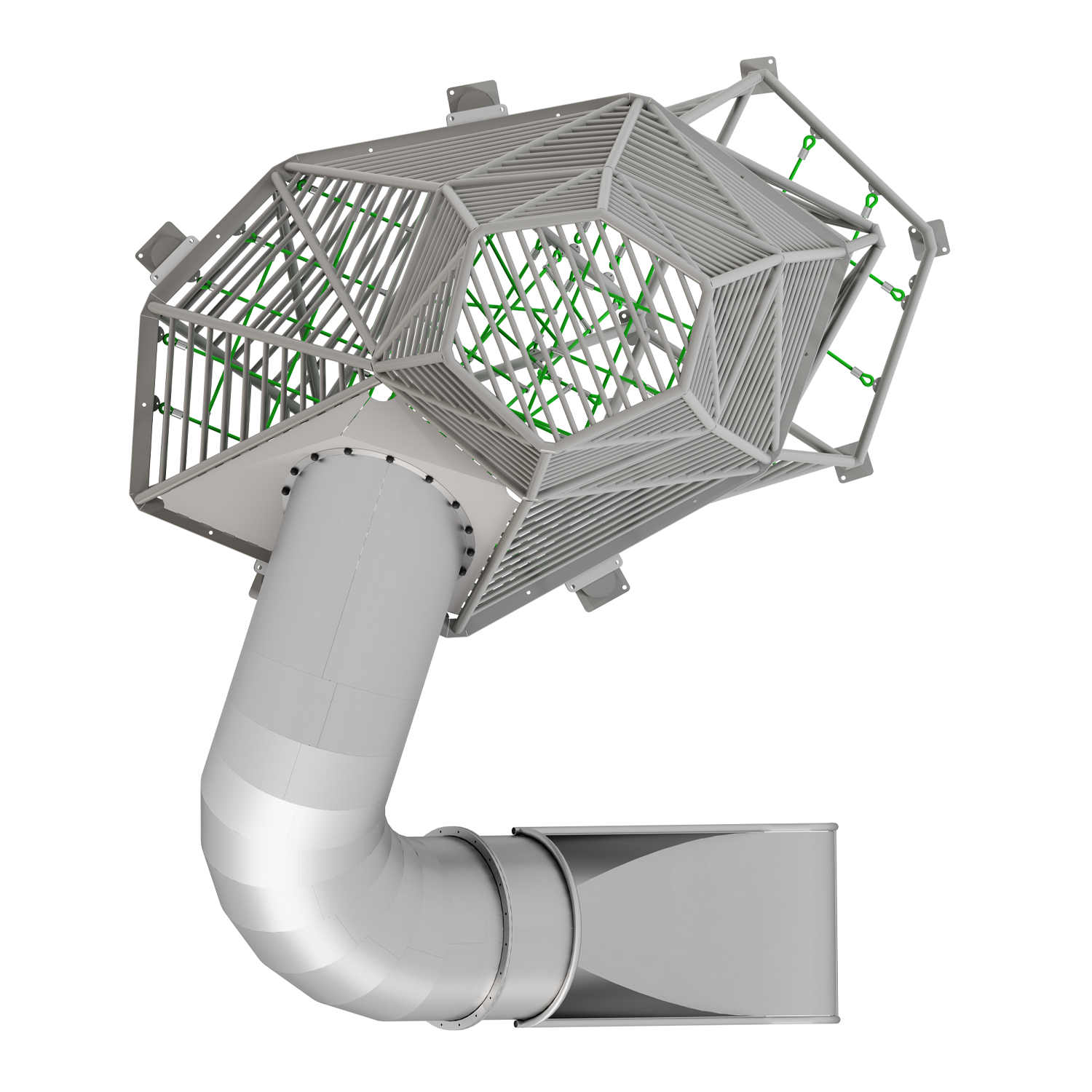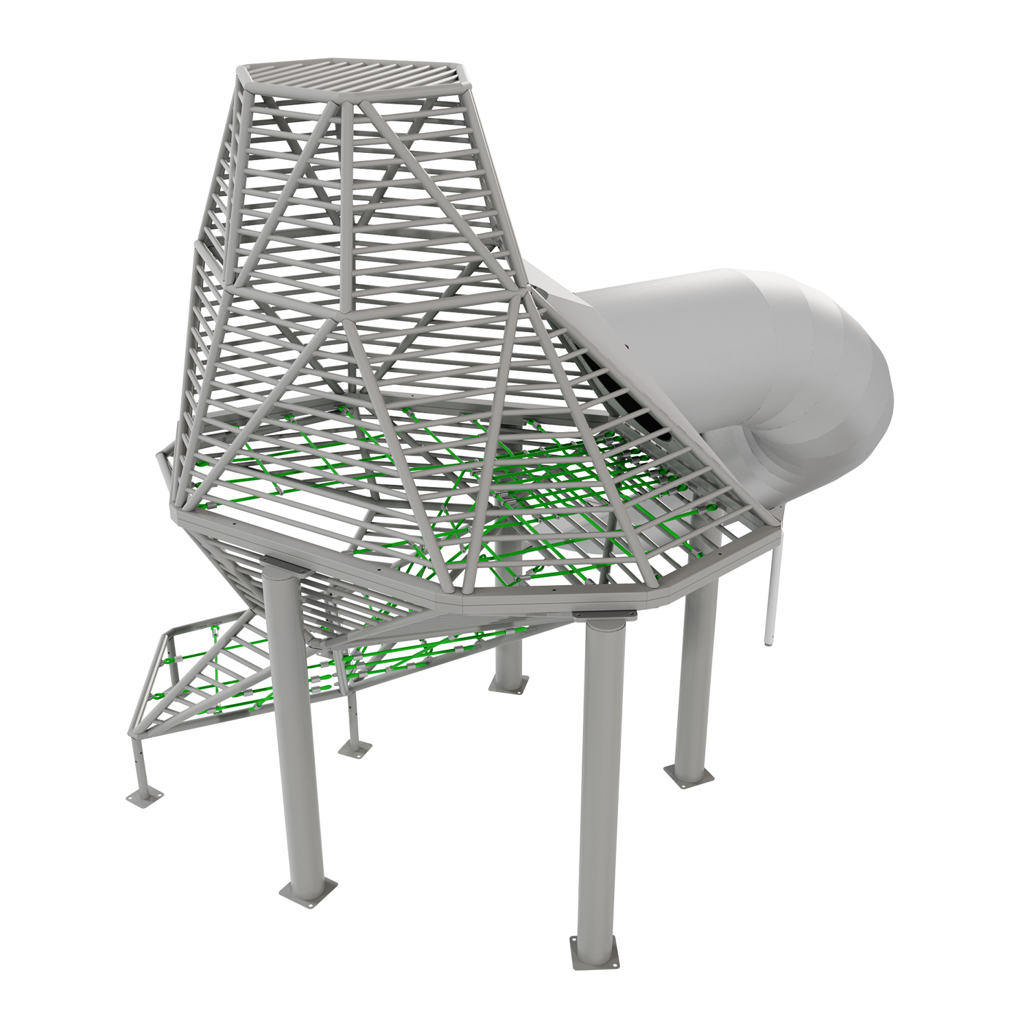 Каркас - сталь конструкционная, покрытие - цинкосодержащий грунт, окраска полимерным порошком. Горки, скаты - сталь нержавеющая толщиной не менее 2 мм, электрохимическая пассивация сварных швов.