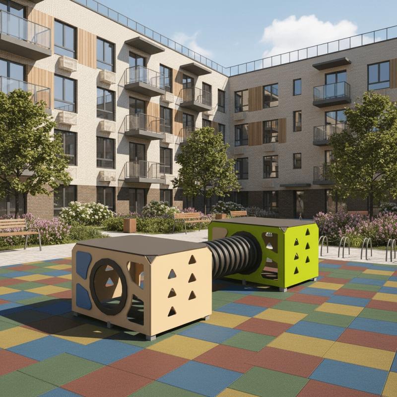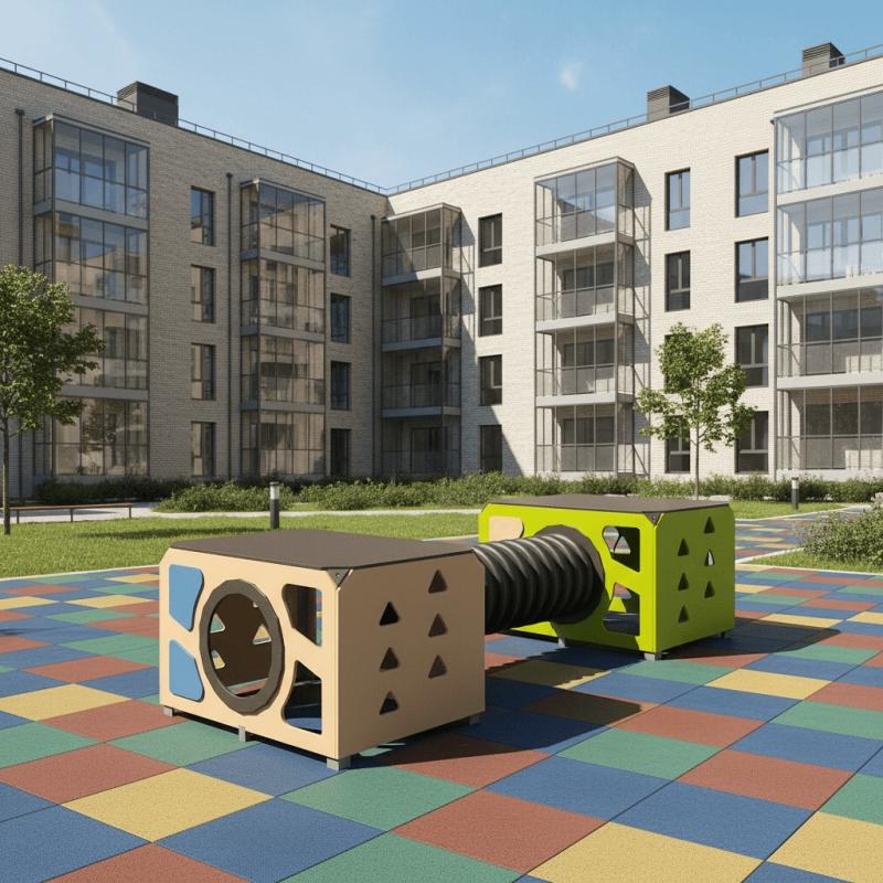 Игровой модуль для тематических игр и физического развития предназначен для детей в возрасте от 4 до 12 лет. Изделие должно представлять собой устойчивую конструкцию, обеспечивающую безопасные условия для занятий на открытом воздухе. Конструкция должна обладать высокой ударопрочностью и виброустойчивостью.В сборе представляет собой конструкцию в виде двух прямоугольных площадок, собраных со стенками с помощью уголков, установлены на грунтозацепы. Две площадки присоединены друг к другу с помощью лаза-труба.