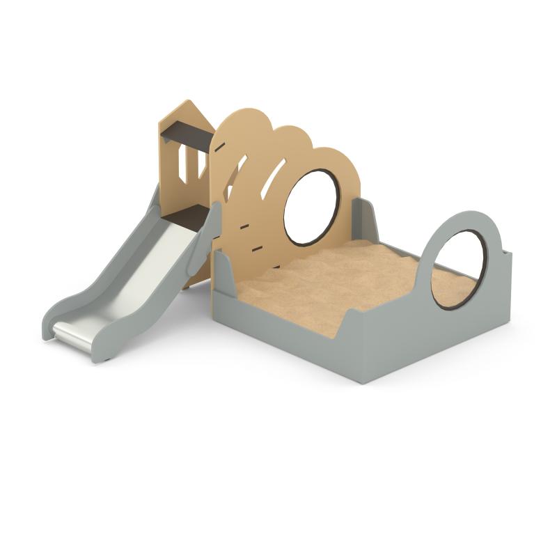 Игровой модуль для тематических игр и физического развития предназначен для детей в возрасте от 4 до 8 лет. Изделие должно представлять собой устойчивую конструкцию, обеспечивающую безопасные условия для занятий на открытом воздухе. Конструкция должна обладать высокой ударопрочностью и виброустойчивостью.В сборе представляет собой конструкцию в виде песочницы, к которой присоединена горка.Изделие устанавливается на открытых уличных участках, находящихся под контролем ответственного лица – эксплуатанта. Установка Изделия должна проводится на ровной площадке, свободной от насаждений. В зоне приземления должно быть ударопоглощающее покрытие (песок, древесные опилки) минимальной толщиной 300 мм.