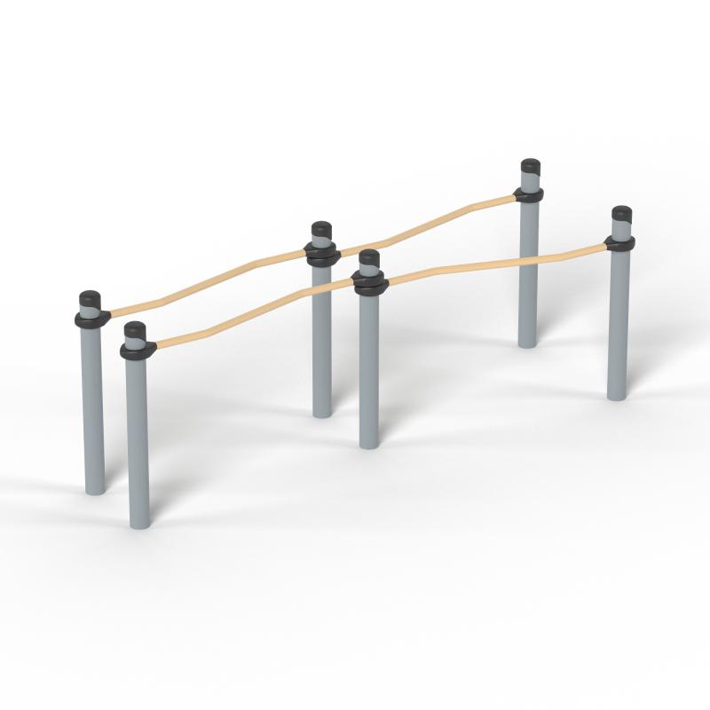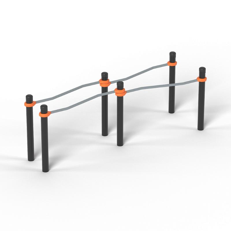 Горизонтальные разноширокие уличные брусья с прочной и устойчивой конструкцией для воркаута и занятий спортом на свежем воздухе для австралийских подтягиваний широким и узким хватом, переднего виса, отжиманий, передвижений по брусьям на руках и других трюков и упражнений на укрепление мышц спины, пресса, рук.