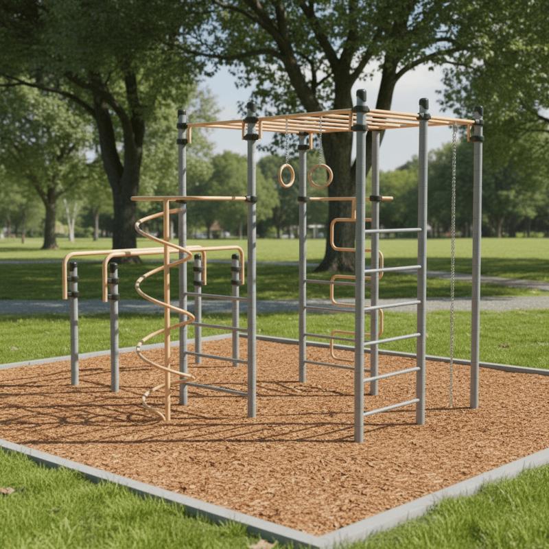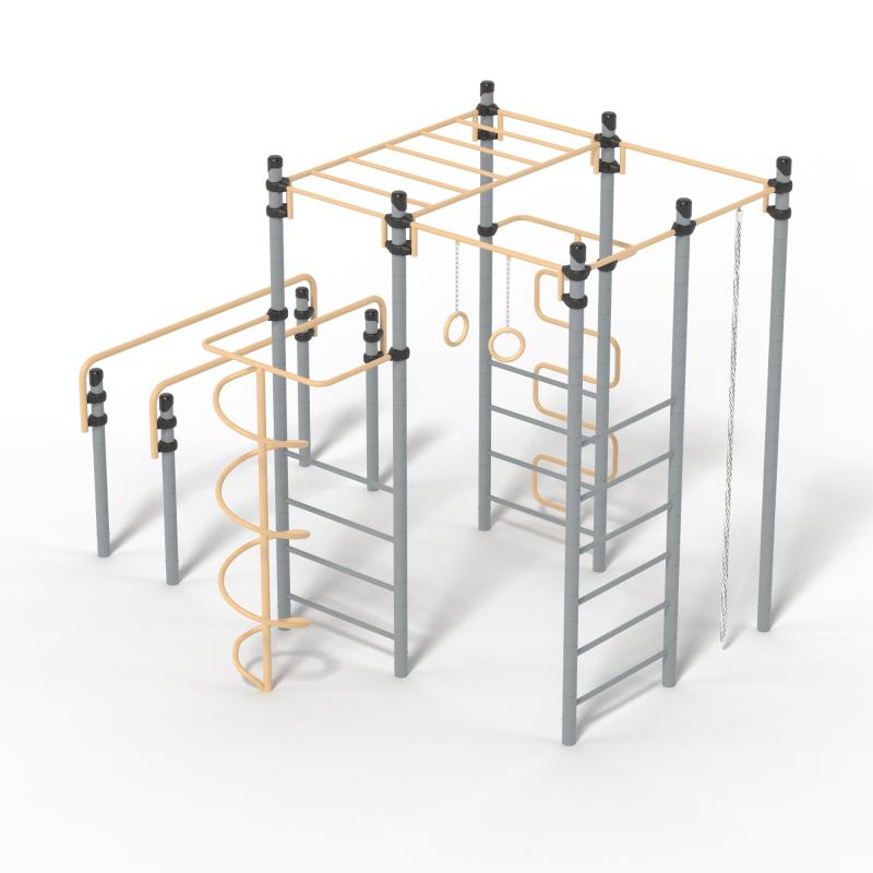 Спортивное оборудование предназначено для установки на территориях игровых зон, зон отдыха, спортивных площадках. Может эксплуатироваться круглогодично для пользователей от 7 до 14 лет. Предназначено для доступных занятий физической культурой на свежем воздухе.Представляет собой сборно-разборную конструкцию, состоящую из одной шестиступенчатой лестницы, двух четырехступенчатых лестниц, расположенных напротив друг друга, над которыми должен быть закреплен прямой рукоход, и одной стойки. Параллельно комплексу должны быть расположены спортивные брусья.Изделие устанавливается на открытых уличных участках, находящихся под контролем ответственного лица – эксплуатанта. Установка должна проводится на ровной площадке, свободной от насаждений. В зоне безопасности должно быть ударопоглощающее покрытие (песок, древесные опилки) минимальной толщиной 300 мм.