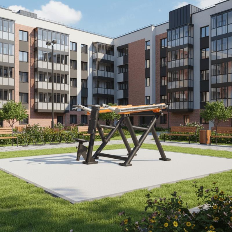 Уличный тренажер для выполнения базового силового упражнения для атлетов «Жим сидя от плеч» или «Армейский жим на плечи».