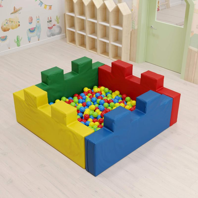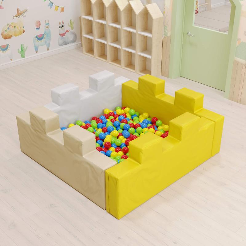 Сухой бассейн с шариками «Форт» - просторный бассейн оригинальной формы в виде крепостной стены, подходит для детской комнаты или игр на свежем воздухе на дачном участке. Помогает ребенку развиваться физически, а также может надолго занять детей игрой. Благодаря оригинальному дизайну: яркие цвета - развлекают и надолго привлекают внимание ребенка, а необычная форма - развивает ловкость, координацию и детскую фантазию. Мягкие блоки соединяются на "липучке", что позволяет собирать и разбирать конструкцию. Прочные соединения, устойчивая конструкция, удобная и мягкая поверхность основы и бортиков, защищают ребенка при падениях и максимально обеспечивают безопасность детей во время игры. Хорошо моется. В комплекте: бассейн, 300 шариков. Габаритные размеры 1400 х 1400 x 550 мм. Вес с упаковкой 18 кг.