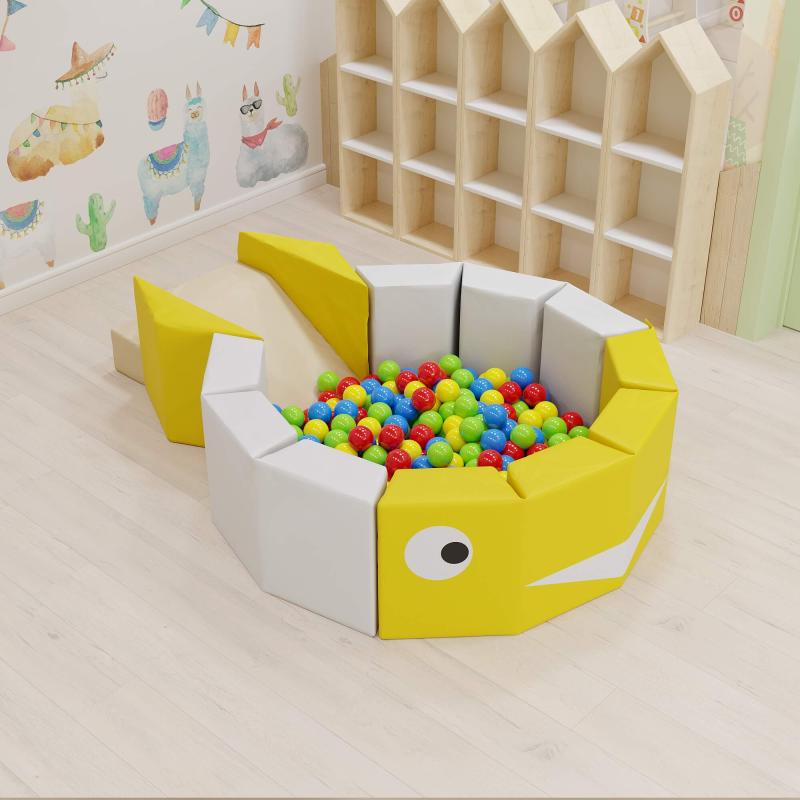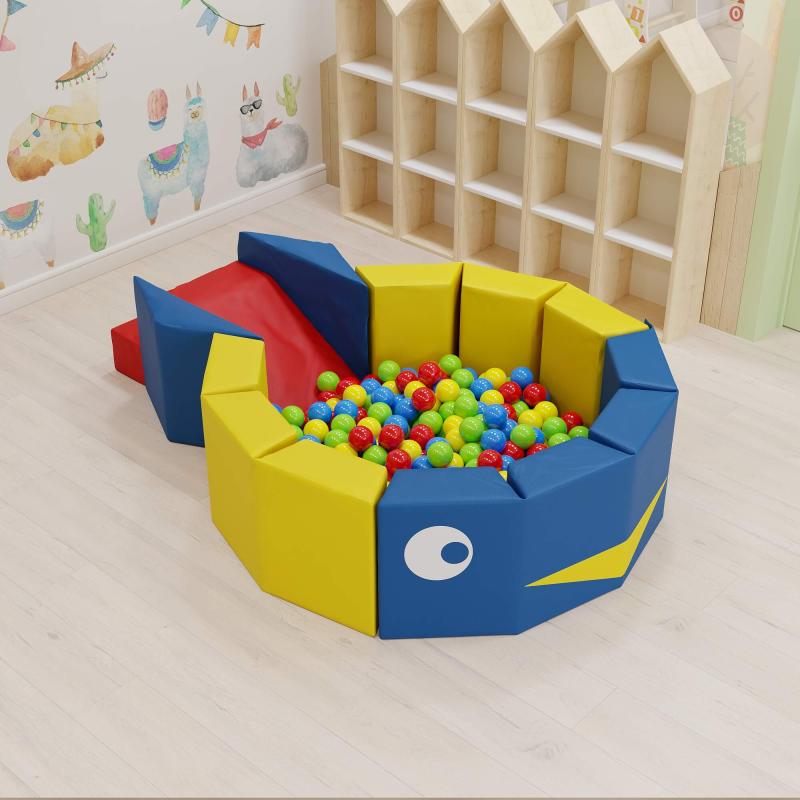 Сухой бассейн с шариками «Кит» - это яркий бассейн оригинальной формы в виде рыбки для детской комнаты или дачного участка. Бассейн складывается из мягких обшитых качественной износостойкой Винилискожи поролоновых деталей – дети не ударятся при контакте с ними, а изделие прослужит долгие годы. Мягкие блоки соединяются на "липучке", что позволяет собирать и разбирать конструкцию. Прочные соединения, устойчивая конструкция, удобная и мягкая поверхность основы и бортиков, защищают ребенка при падениях и максимально обеспечивают безопасность детей во время игры. Благодаря оригинальному дизайну: яркие цвета - развлекают и надолго привлекают внимание ребенка, а необычная форма - развивает ловкость, координацию и детскую фантазию. Прост в уходе – как сам бассейн, так и шарики легко очищаются от загрязнений с помощью обычной воды и влажной губки. В комплекте: бассейн, 300 шариков. Габаритные размеры 1200 х 1500 x 400 мм. Вес 14 кг.